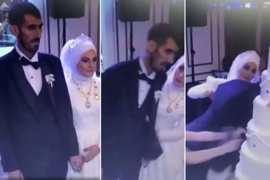 Gelin ve damadın davetliler eşliğinde sahneye çıkarak düğün pastasını kestiği sırada damadın ansızın istikrarını kaybettiği görüldü. Cep telefonuyla kaydedilen manzaralarda, damadın pastanın üzerine hakikat devrilmek üzereyken etrafındakilerin müdahalesiyle son anda tutulduğu anlar yer aldı. Yere yığılmak üzere olan damadı, gelini ve yakınları zahmetle ayakta tuttu.