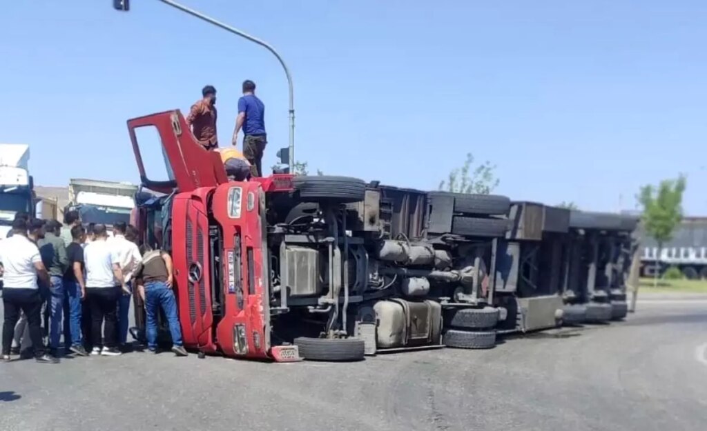 Şırnak’ın Cizre ilçesinde virajda devrilen tırın şoför yaralandı.