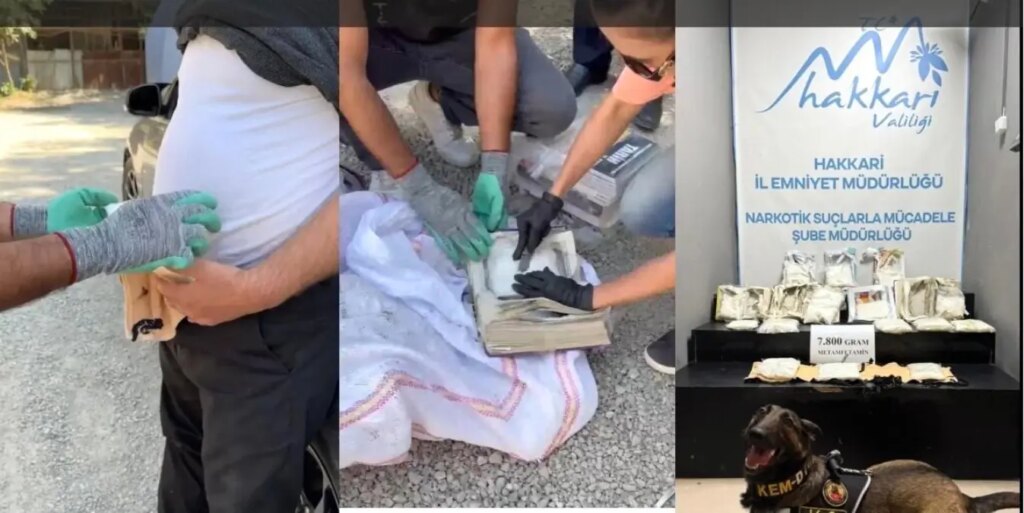 Edinilen bilgilere göre, Hakkari Emniyet Müdürlüğü gruplarınca 23 Haziran 2025 tarihinde durumundan şüphelenilen bir arabada arama gerçekleştirildi. Yapılan aramada, şüphelinin göğüs ve karın kısmında korsenin altına gizlenmiş halde 3 kesim halinde toplam 1 kilo 520 gram metamfetamin bulundu. Birebir aracın bagaj kısmında çuval içerisine gizlenmiş kitap ve defterler ortasına zulalanmış 12 kesim halinde toplam 6 kilo 280 gram metamfetamin daha ele geçirildi. Toplamda 7 kilo 800 gram metamfetamin unsuru ele geçirilirken, gözaltına alınan kuşkulu şaşıs sevk edildiği isimli mercilerce tutuklanarak Hakkari Kapalı Ceza İnfaz Kurumu’na teslim edildi. – HAKKARİ