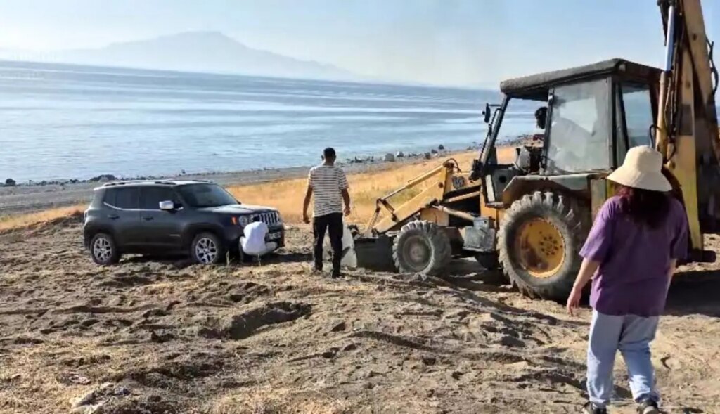 Van’ın Tuşba ilçesi Ayanıs kıyısında mahsur kalan tatilcilerin yardımına mahalle muhtarı koştu.