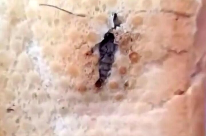Şırnak'ta bir vatandaş, bakkaldan satın aldığı ekmeğin içinde böcek buldu. O anları kaydederek kontrollerin...