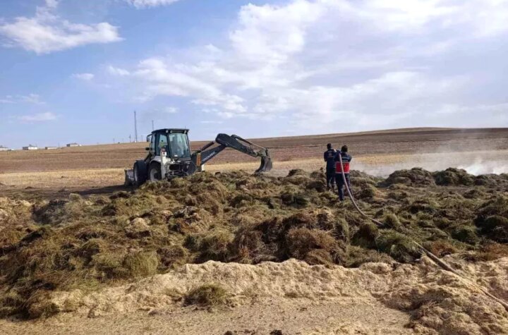 Özalp ilçesinde meydana gelen yangında, Oktay Kazan'a ilişkin ot ve saman yığını alev aldı....