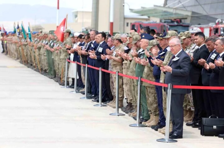 Pençe-Kilit Harekatı bölgesinde metan gazından etkilenerek şehit olan askerlerin naaşları, Hakkari Yüksekova'daki Selahaddin Eyyübi...
