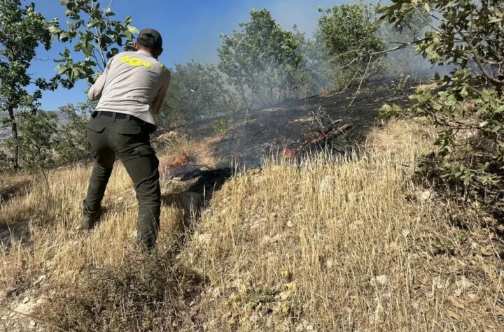 Şırnak'ın Cudi Dağı eteklerinde çıkan örtü yangını, belediye ve orman işletme müdürlüğü gruplarının 4...