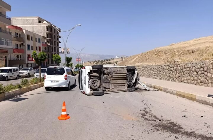 Şırnak'ta freni boşalan bir kamyonet, seyir halindeki bir taksiye çarparak takla attı. Kazada 4...