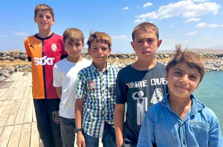 Dünyanın en büyük sodalı gölü Van Gölü'nde yaz aylarında yüzen çocukların saçlarının sarıya dönmesi,...