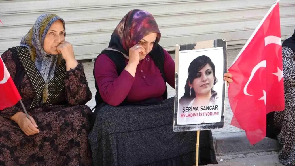 Van’da terör örgütü PKK tarafından çocukları dağa kaçırılan ailelerin başlattığı evlat nöbeti, 104’üncü haftaya girdi. Çocukları farklı tarihlerde terör örgütü PKK tarafından kaçırılan 35 aile, ellerindeki dövizlerle DEM Parti Van Vilayet Başkanlığı binasına yürüyerek burada basın açıklaması yaptı. Parti ve PKK aleyhine sloganlar atan aileler, kararlı duruşlarını sürdüreceklerini belirtti. Aksiyonda kızının fotoğrafına bakarken gözyaşlarına hakim olamayan anne Nazlı Sancar, DEM Parti önündeki nöbetlerini kararlılıkla sürdürdüklerini belirtti. Terörsüz bir Türkiye istediklerini vurgulayan Sancar, “Artık bu bölgede şehit gelmesini istemiyoruz. Asker, polisimiz ölmesin, artık anneler ağlamasın ve çocuklar dağlara gitmesin. Terörsüz Türkiye istiyoruz. Şuanda hepimiz bayram havası yaşıyoruz ve umutla bekliyoruz. İnşallah bütün anne ve babalar evlatlarına kavuşacak. 4 gözle çocuklarımızın yolunu gözlüyoruz” dedi.