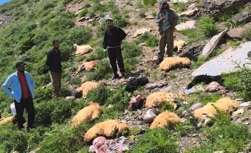 Hakkari’nin Yüksekova ilçesi kırsalında uçurumdan atlayan 20 koyundan 12’si telef oldu.